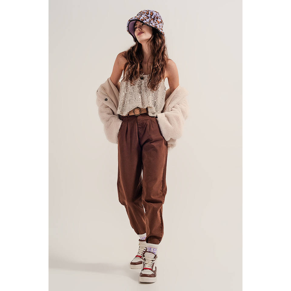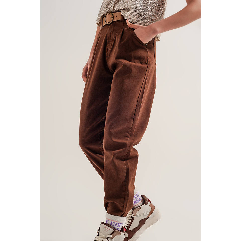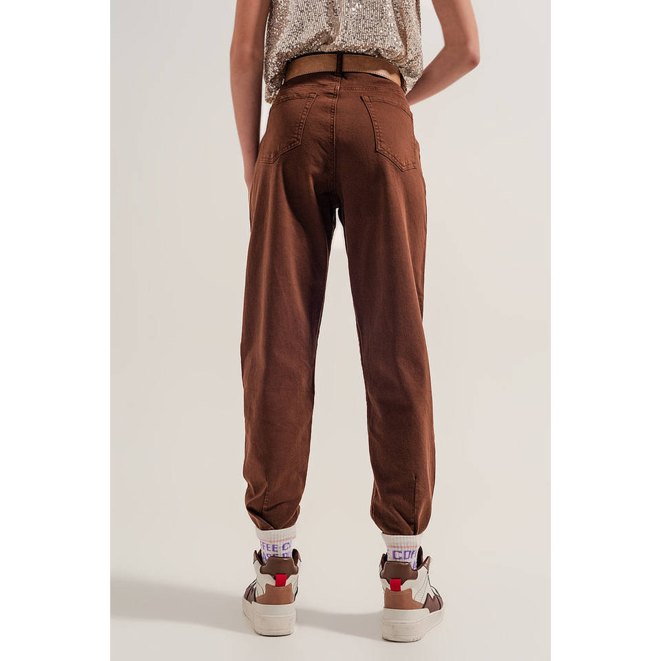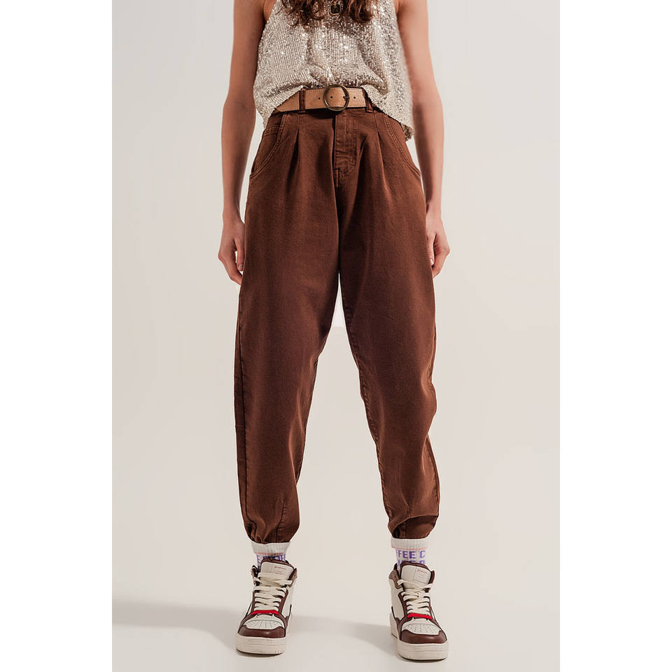 Jeans de Cintura Alta con Pliegues Delanteros en Color Marrón