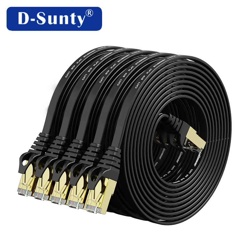 Cable de Red Plano Cat7 STP de Alta Venta, Cable Ethernet de Cobre RJ45-RJ45 con Cubierta de PVC de 0.5-100m para Interiores, para Computadora y WiFi