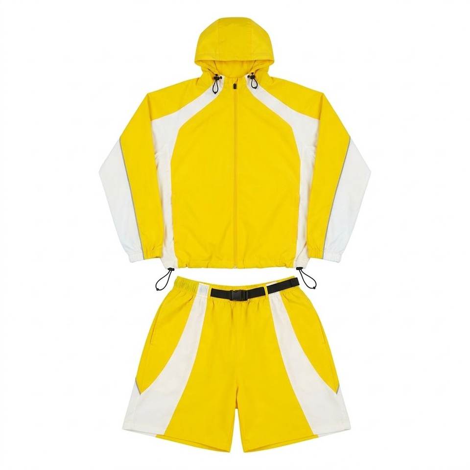 Conjuntos de Pantalones Cortos y Sudaderas con Capucha de Nailon Amarillo y Blanco de Alta Calidad con Logotipo Personalizado para Hombre, Ideales para Ropa Urbana de Verano