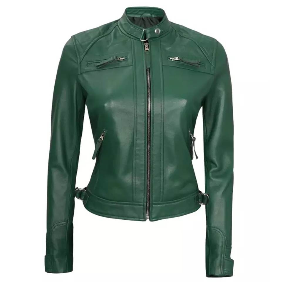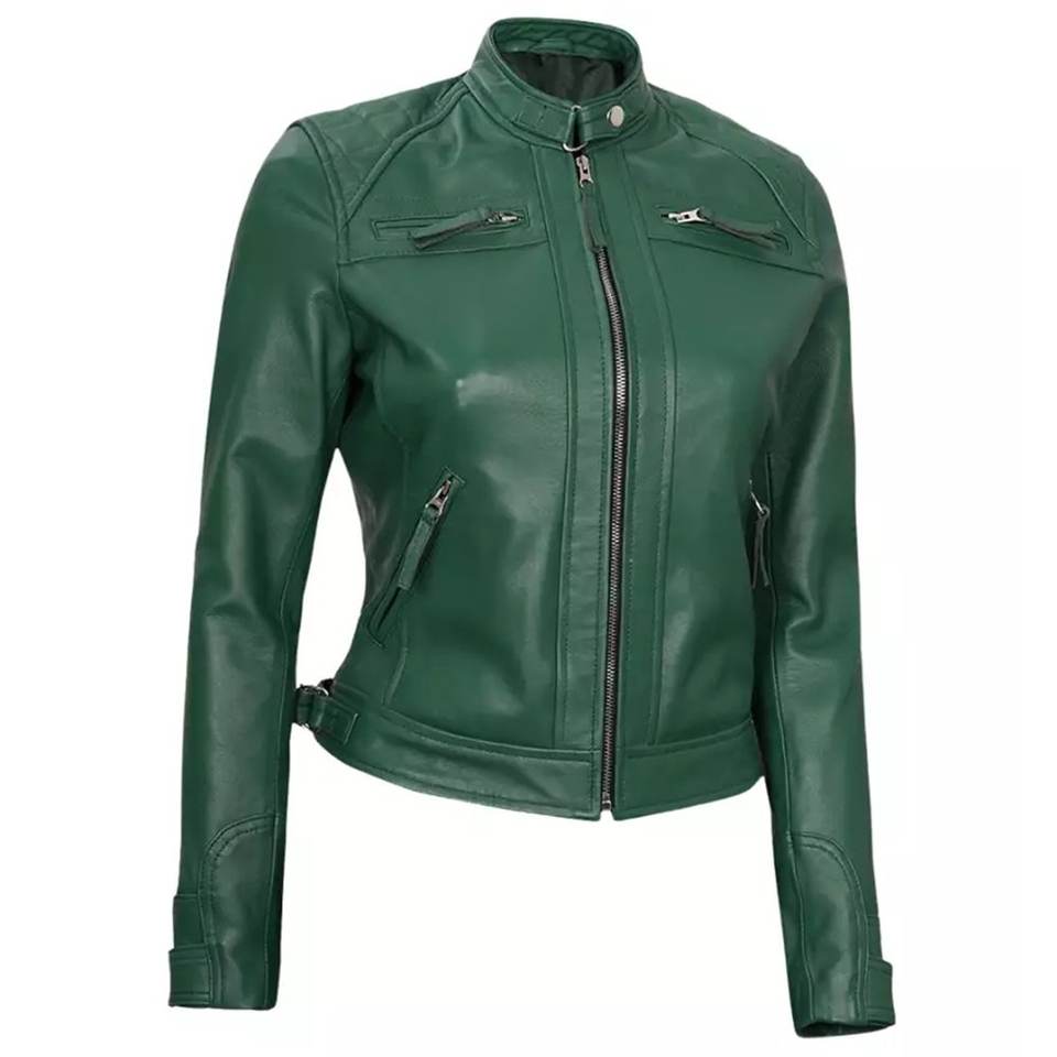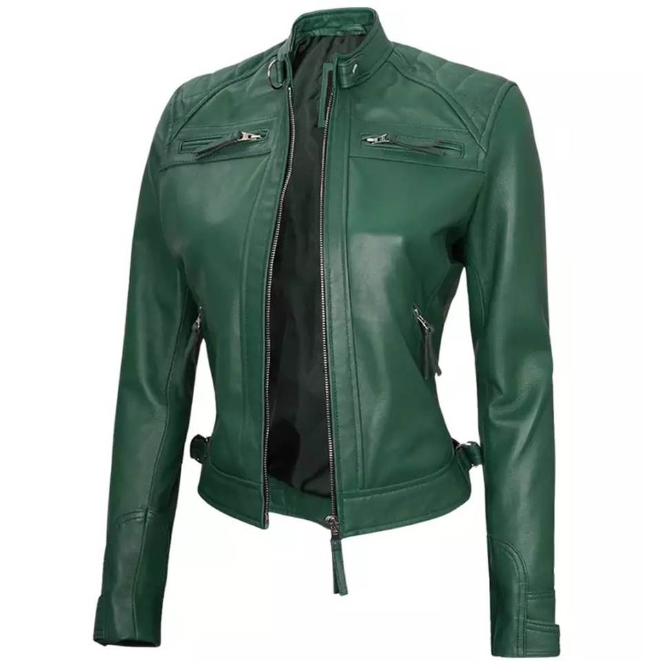 Chaquetas Verdes para Mujer con Logotipo Personalizado RTS, Chaqueta Vintage de Invierno, Chaqueta Bomber Clásica de Cuero Genuino, Ropa Urbana