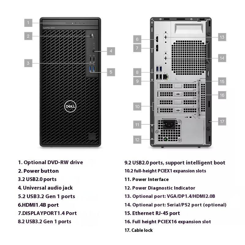 High SalesCPU I5-12500 8G RAM 512G SSD Gráficos integrados Dells OptiPlex 3000 MT Dells 3000 MT Computadora de escritorio Pc