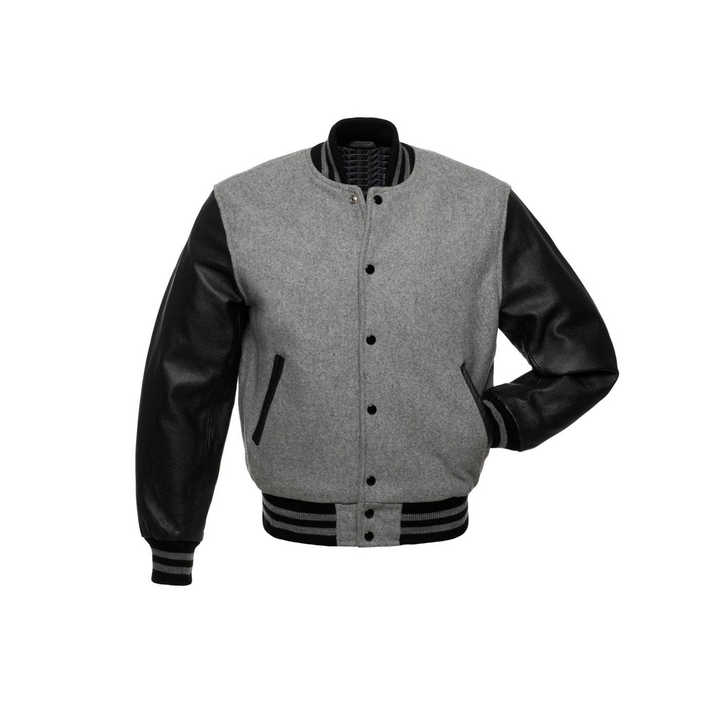 High School Custom Varsity Letter Jacket Stand Collar con parche de chenilla Lana y cuero Diseño de logotipo frontal Estilo liso
