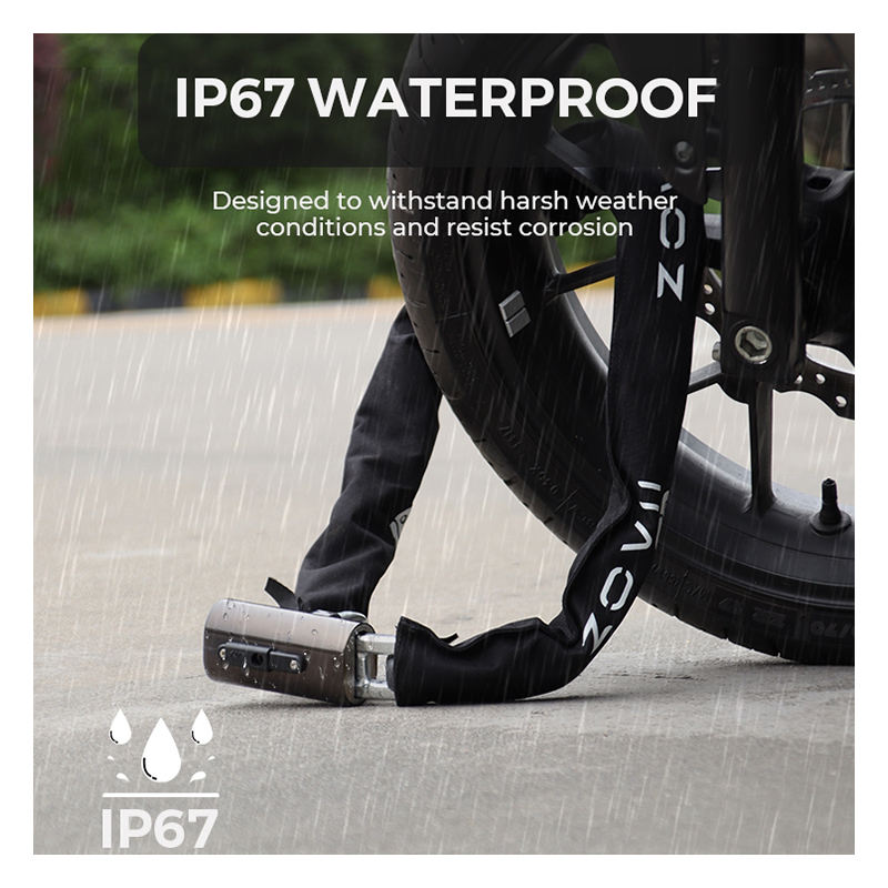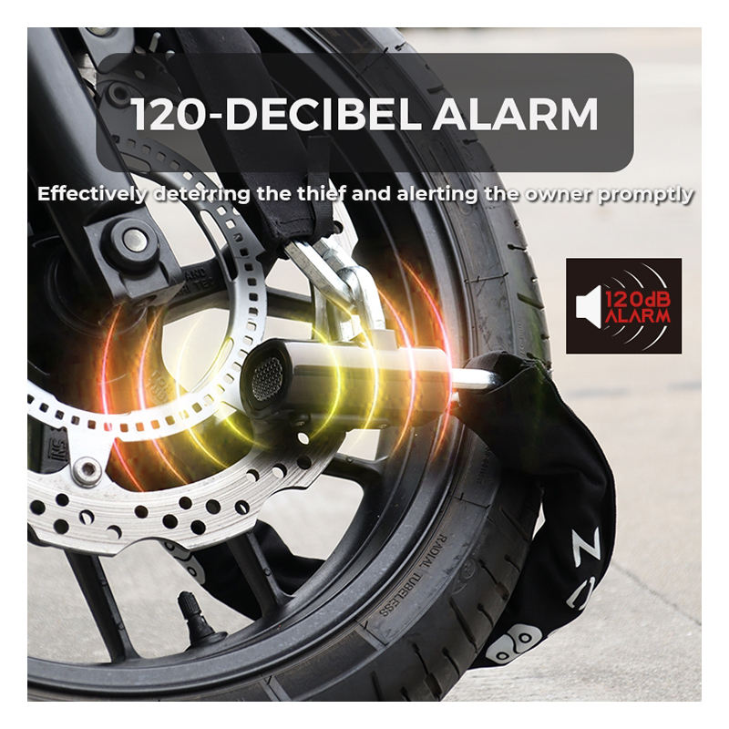 Candado para Bicicleta ZOVII de Alta Seguridad con Alarma de 120dB, Cadena de Acero al Carbono de 12mm, 1200mm de Largo, Resistente al Polvo