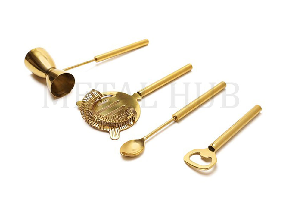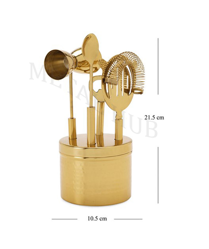 Nombre del producto:Juego de herramientas de barra de metal martillada de oro con base