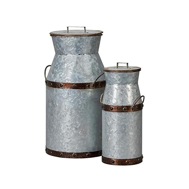 Jarrón de Flores Rústico Estilo Granja, de Metal Galvanizado Vintage, Decorativo para el Hogar, Tamaño Personalizable