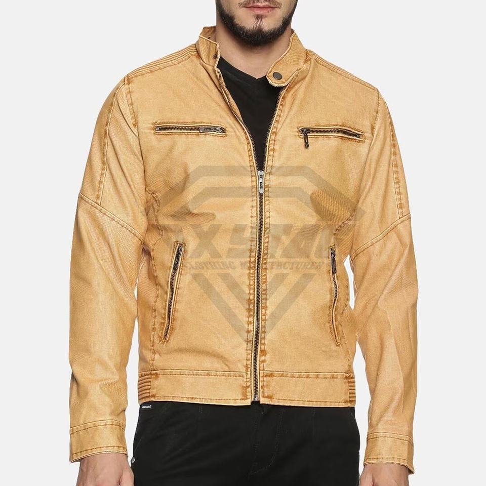 Chaqueta de cuero para hombre de alta venta Material ecológico con cuello alto Nuevo diseño Tela cómoda transpirable para el invierno