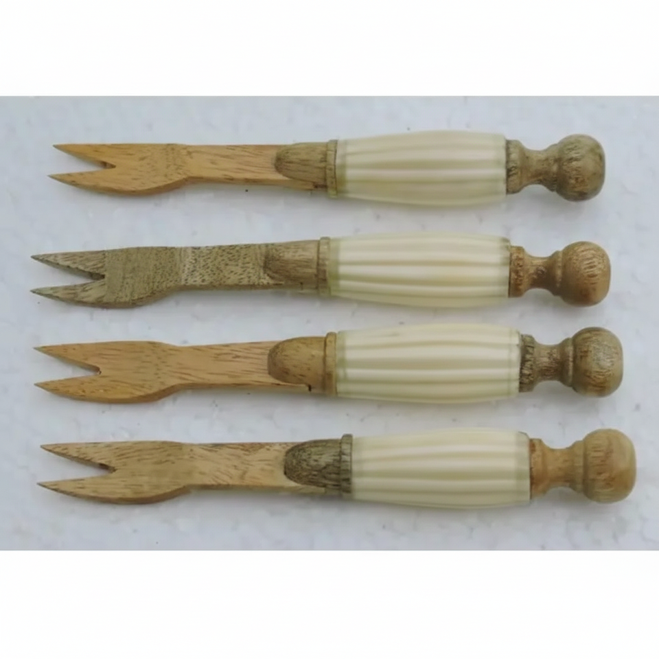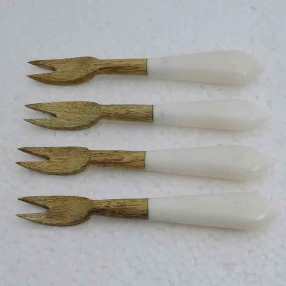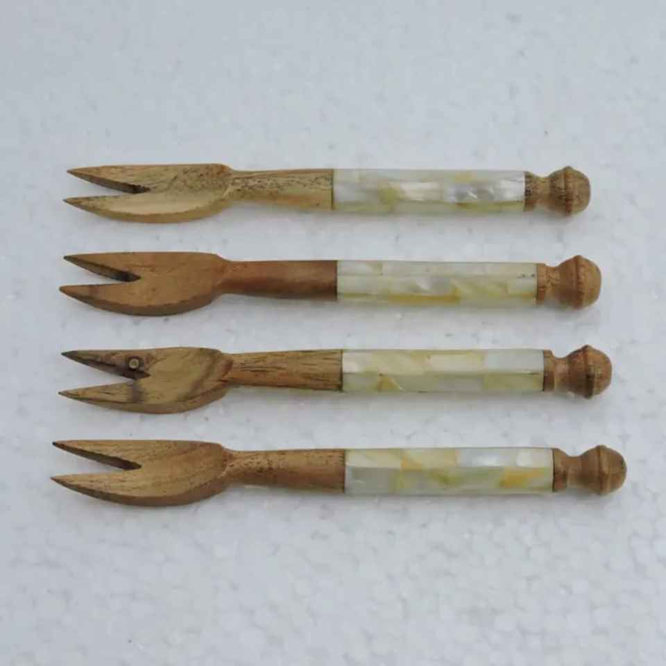 Juego de tenedores de madera de alta calidad con mango de resina y acabado pulido para ocasiones especiales, eventos, restaurantes, hoteles, juego de cubiertos moderno.