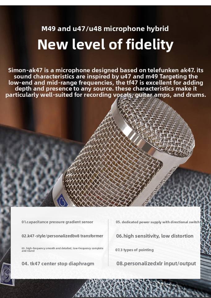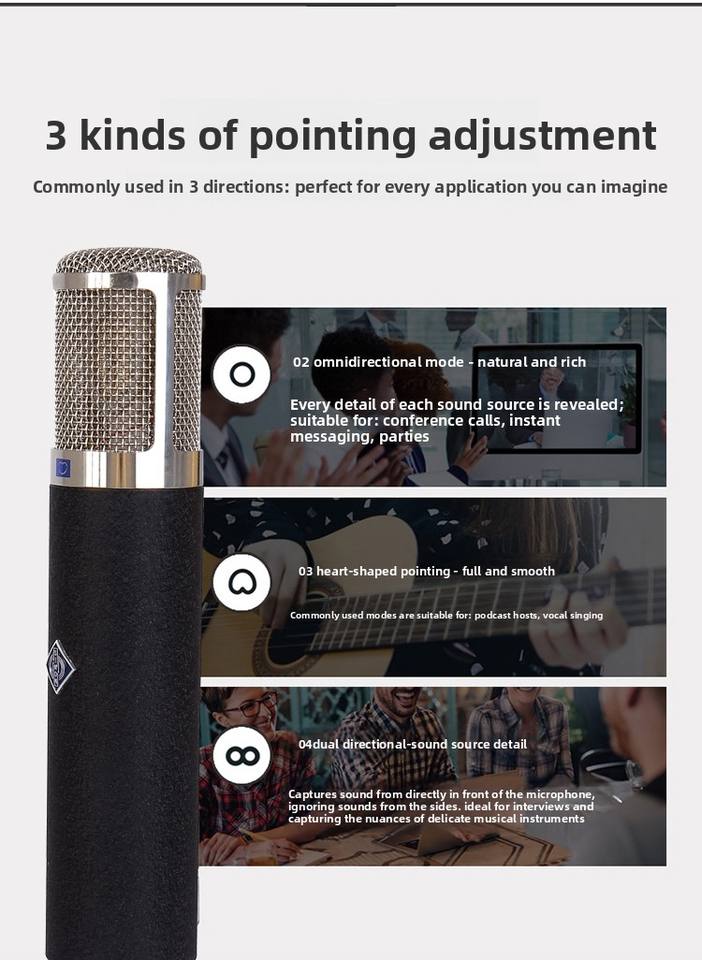 Micrófono de Condensador de Alta Sensibilidad y Baja Distorsión con Interruptor de Selección Direccional