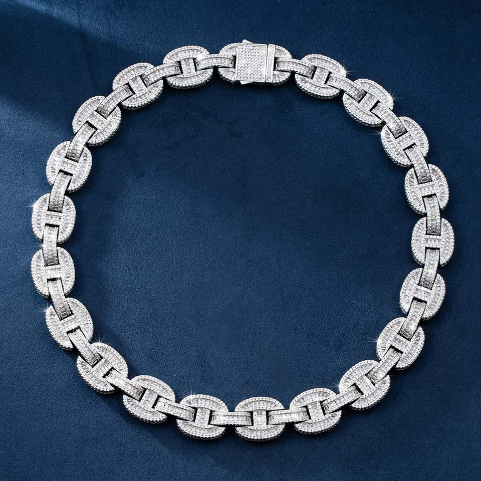 Cadena Cubana de Latón Plateado de Alto Brillo con Diamantes, Unisex, Estilo Hip Hop Urbano, Certificado IGI, Collar de Regalo Ice Legacy