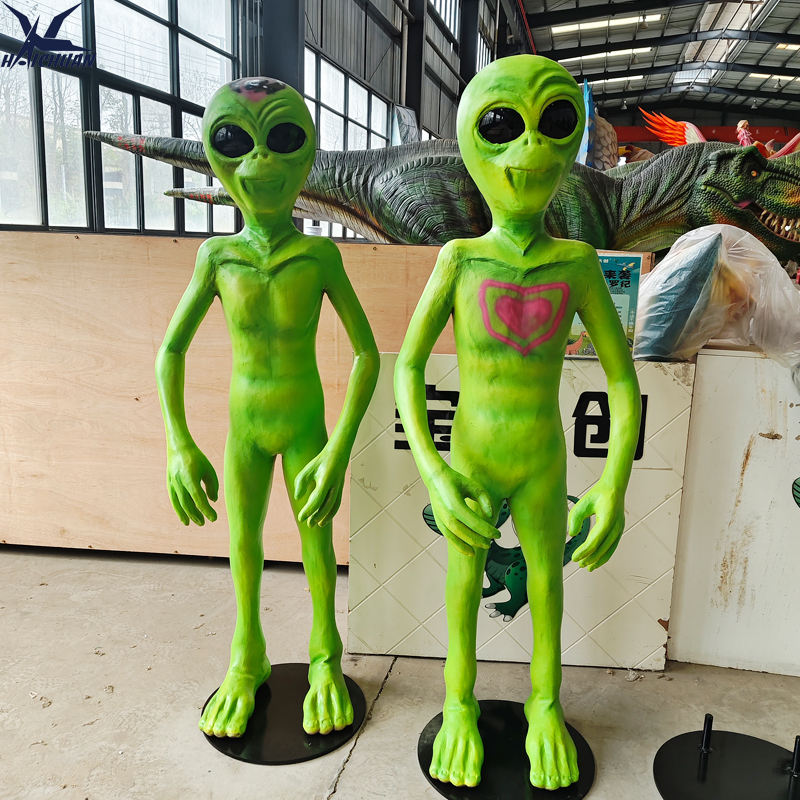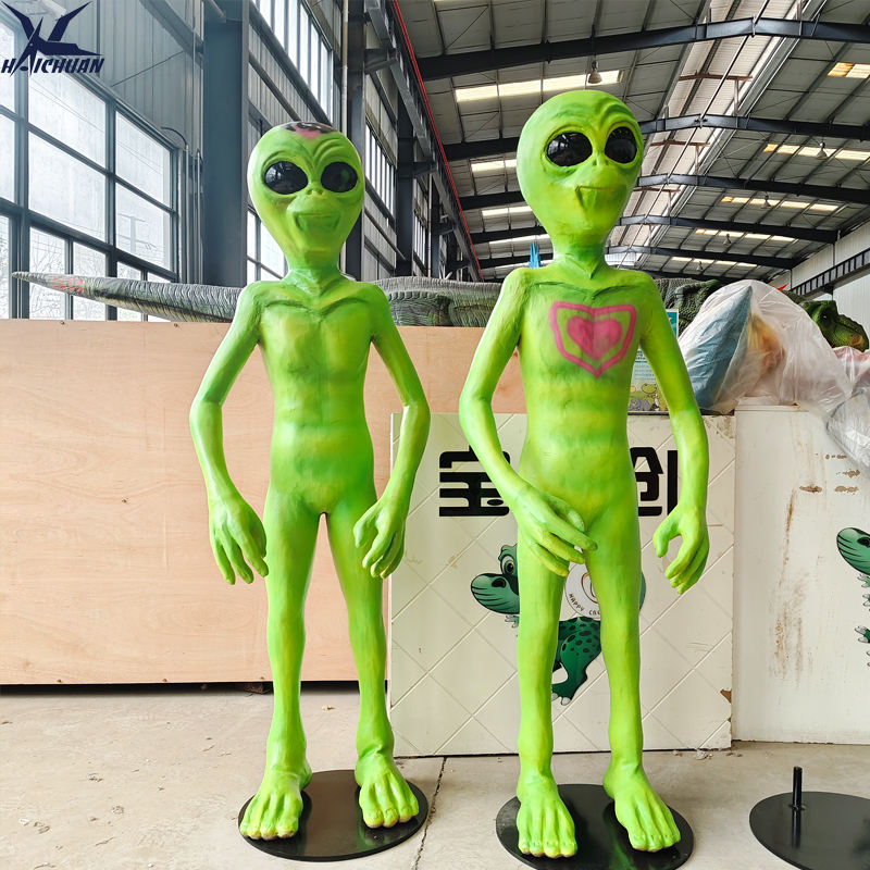 Estatuas de Extraterrestres Verdes de Alta Simulación a Tamaño Real con Diseño de Patrón Personalizado para Decoración de Parques Temáticos al Aire Libre