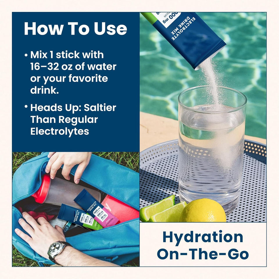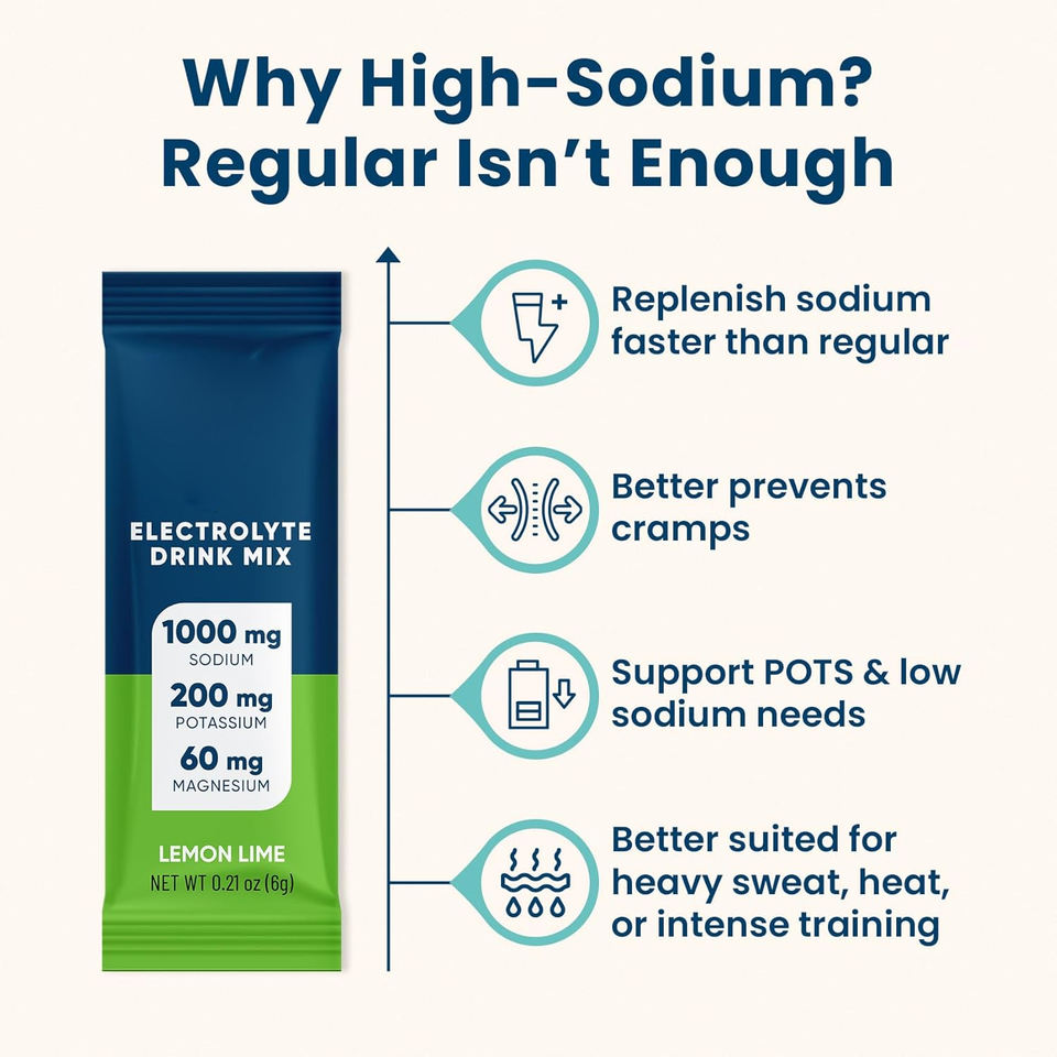 Sobres de Electrolitos en Polvo Altos en Sodio y Sin Azúcar - Paquetes de Hidratación con Sodio, Potasio y Magnesio | Cero Calorías