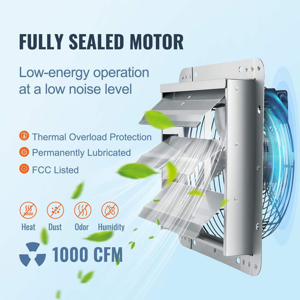 Ventilador de Techo de Alta Velocidad de 1000 CFM con 12 Persianas, de Aluminio, para Montaje en Pared, con Motor AC, para Ventilación y Refrigeración de Invernaderos