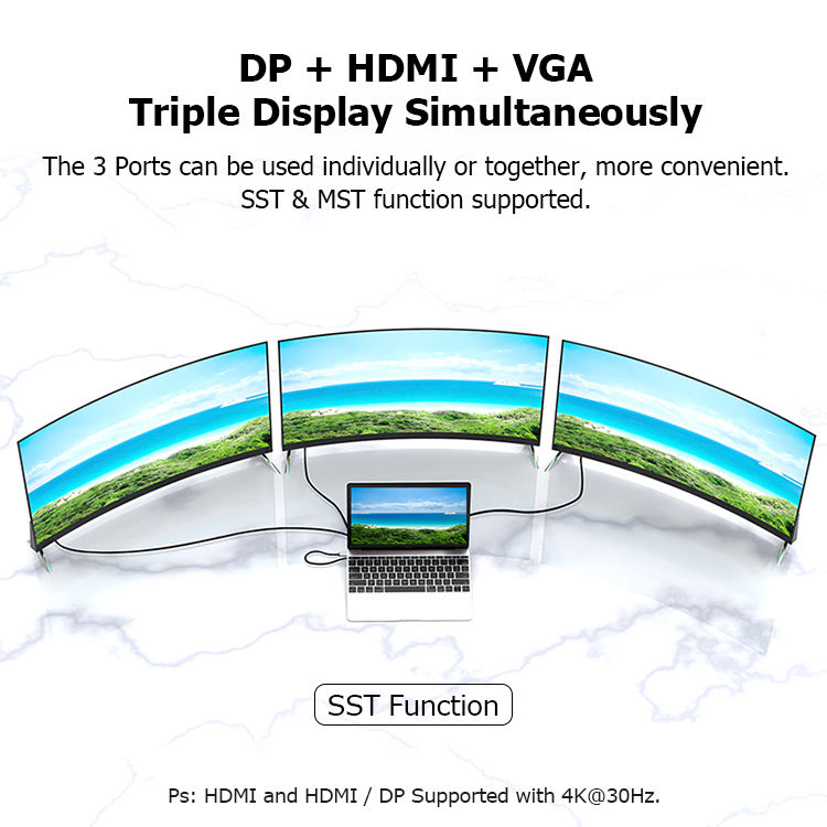 Interfaz:HDM1 + DP + VGA + RJ45 + PD + USB-C + USB3.0 * 2 + USB2.0 + SD + TF + 3,5 Audio