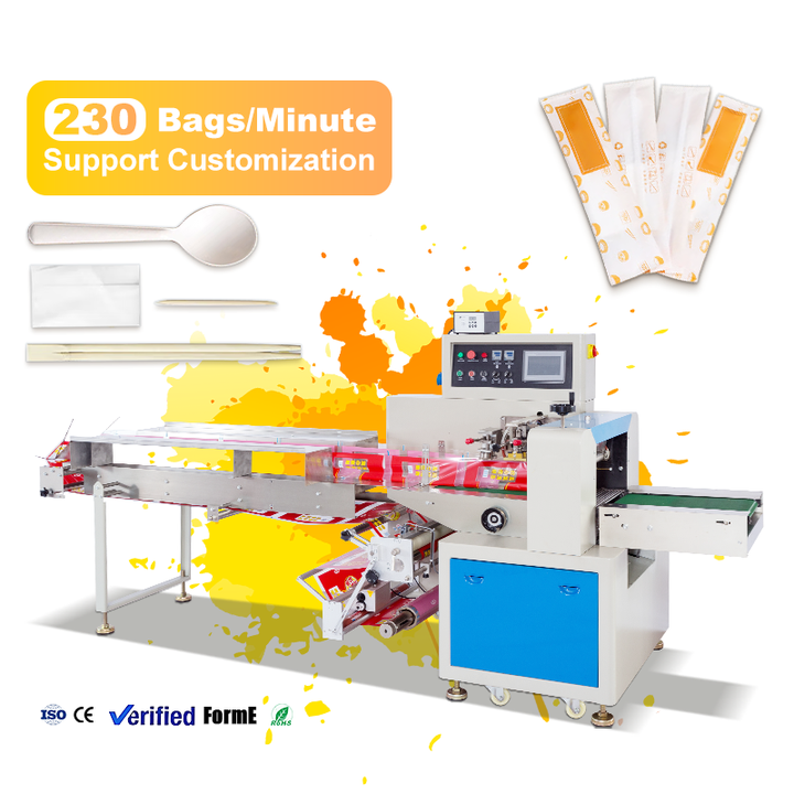 Máquina Empacadora Automática de Alta Velocidad para Cubiertos Desechables, Envoltura Horizontal en Almohada