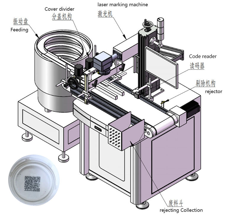 Nombre del producto:Máquina de Marcado Láser UV con Alimentación Rotativa Automática para Tapas de Botellas