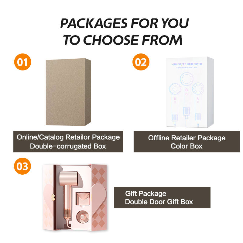 Set de secador de pelo de alta velocidad con motor BLDC sin aspas personalizado, iónico y montable en pared para uso doméstico, secador-soplador de iones negativos