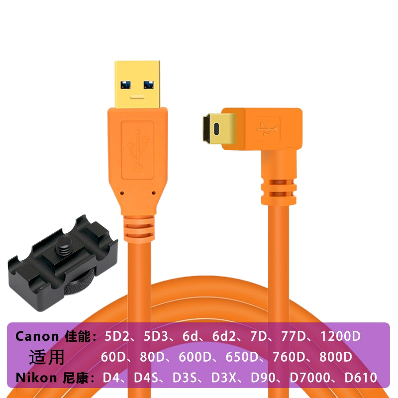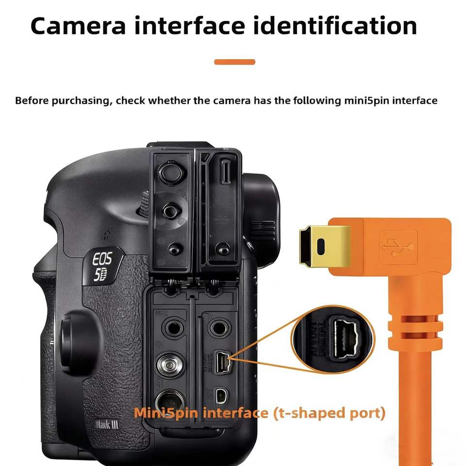 Mini Cable de sujeción en ángulo USB 2,0 de 5 pines de alta velocidad, Cable de datos de cámara con enchufe chapado en oro para Canon 760D 800D Nikon D610 D4 D3S