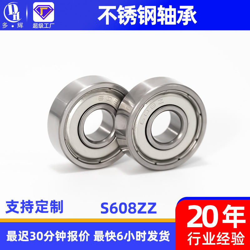 Rodamiento de Bolas de Ranura Profunda Miniatura de Alta Velocidad S608ZZ8x22x7 de Acero Inoxidable 608ZZ con Sellos 2RS de Acero Cromado