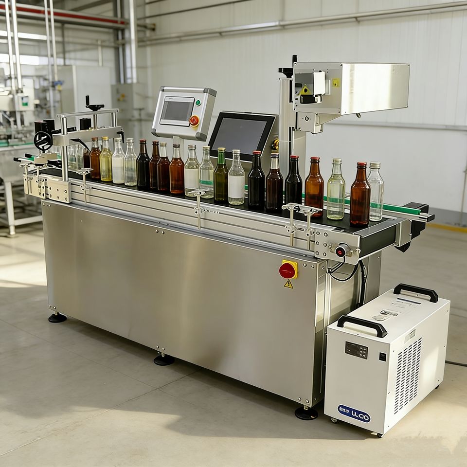 Sistema de Marcado Láser en Línea de Alta Velocidad para Botellas de Vidrio y PET con Serialización Individual por Código QR