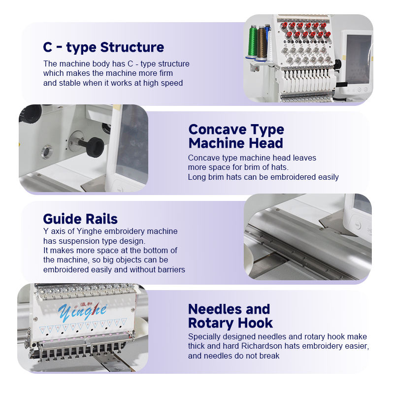 Máquina de bordado Yinghe de cabeza única de alta velocidad, 12 agujas, 400*500mm, tamaño de trabajo, diseño plano computarizado, nueva Sudáfrica