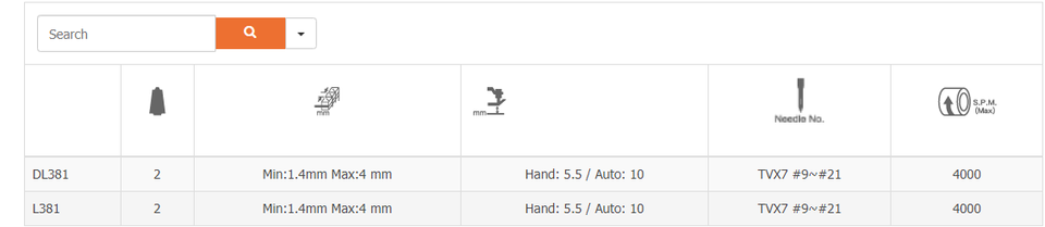Tipo de aguja:TV * 7 #9 ~ #21