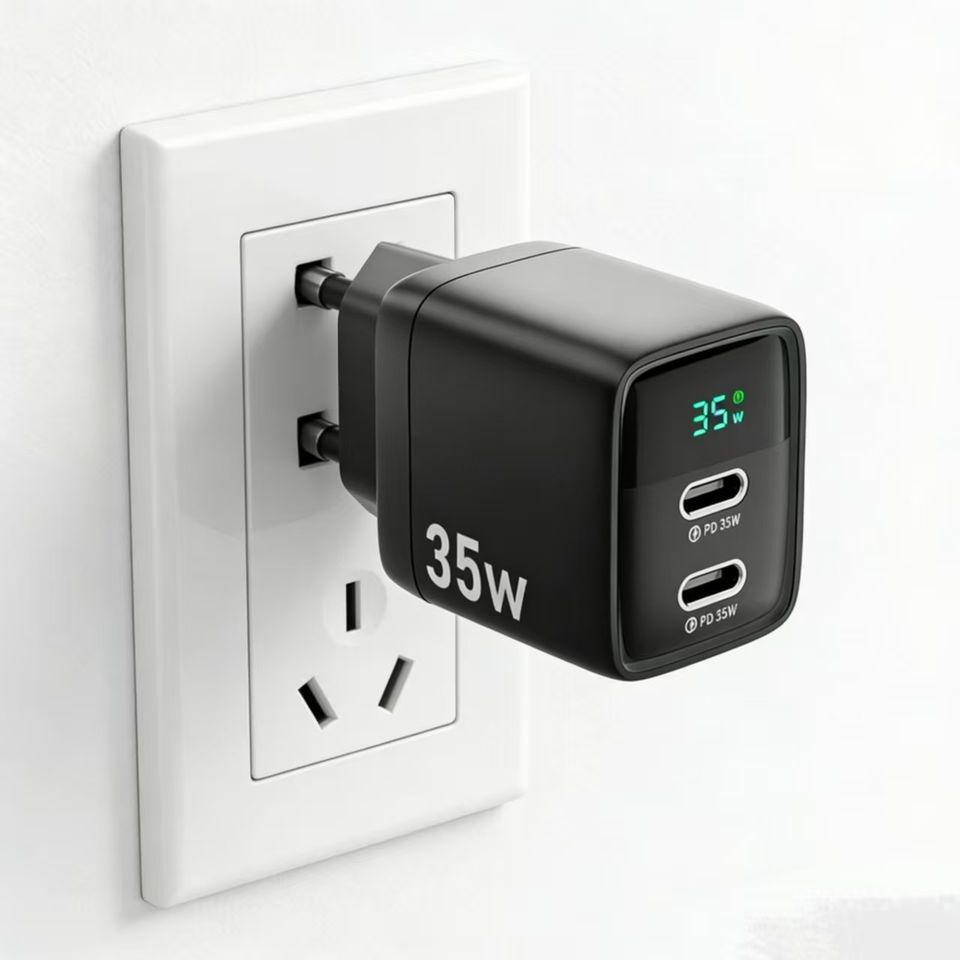 Cargador de teléfonos móviles de carga rápida GaN con pantalla digital inteligente de alta velocidad, doble puerto, 35w, cargador de pared para viajes.