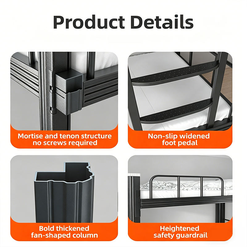 Litera Metálica de Alta Estabilidad para Dormitorio, Litera Alta de Acero Resistente con Barandilla de Seguridad, Estructura Desmontable para Fácil Montaje