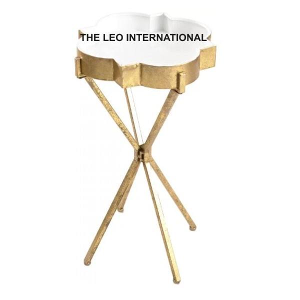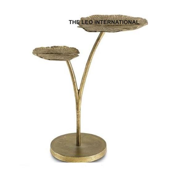 Mesa Auxiliar de Metal Duradera de Alta Calidad, Color Dorado, Diseño Único de Hoja, Aluminio Fundido, Mueble Atractivo