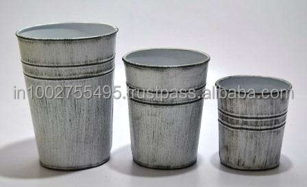 Macetas de Metal Galvanizado Pintadas a Mano de Alta Calidad, Diseño Vintage IHA, Macetas para Plantas de Interior y Exterior