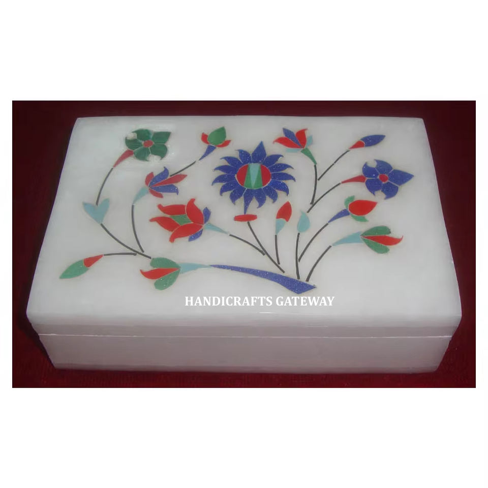 Caja de joyería rectangular de mármol blanco de alta calidad para fines decorativos, con acabado fino, hecha en India.