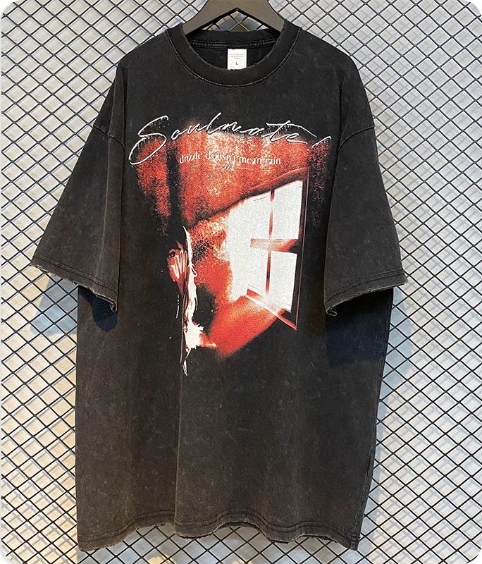 High Street Black Hip Hop Logotipo personalizado Camiseta de lavado ácido de gran tamaño Camiseta lavada Vintage para hombre