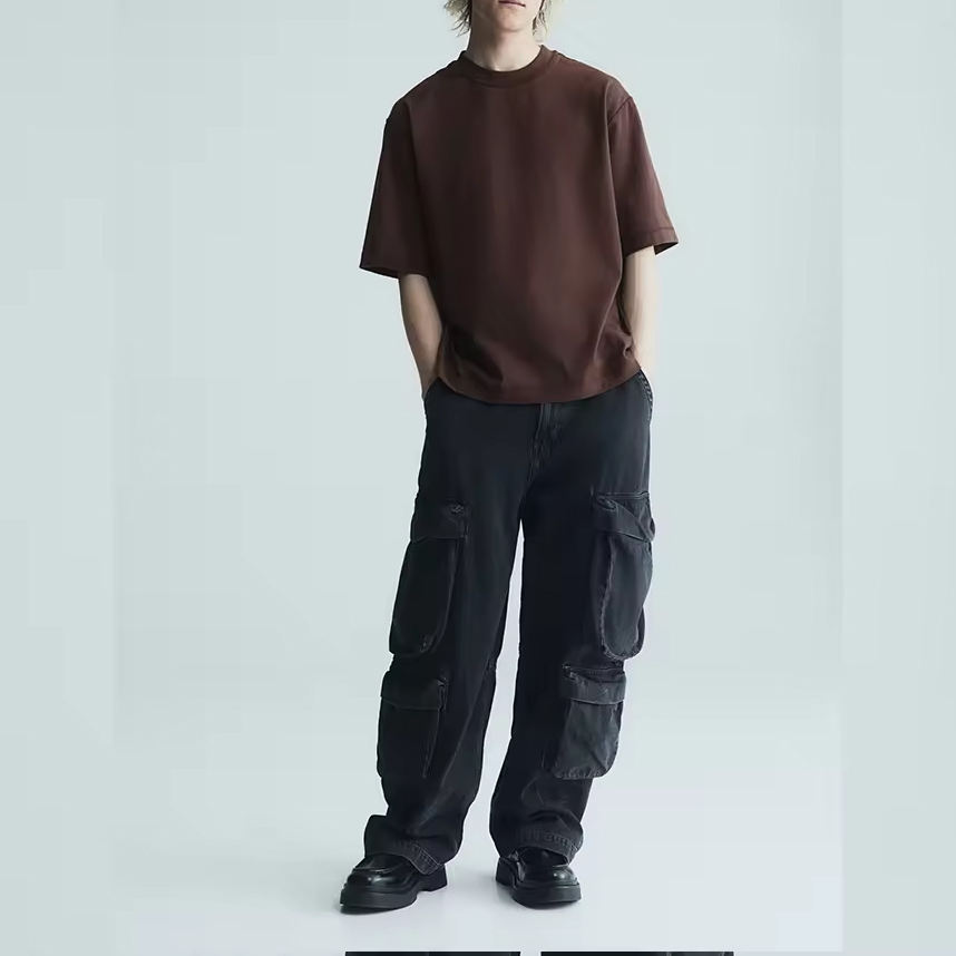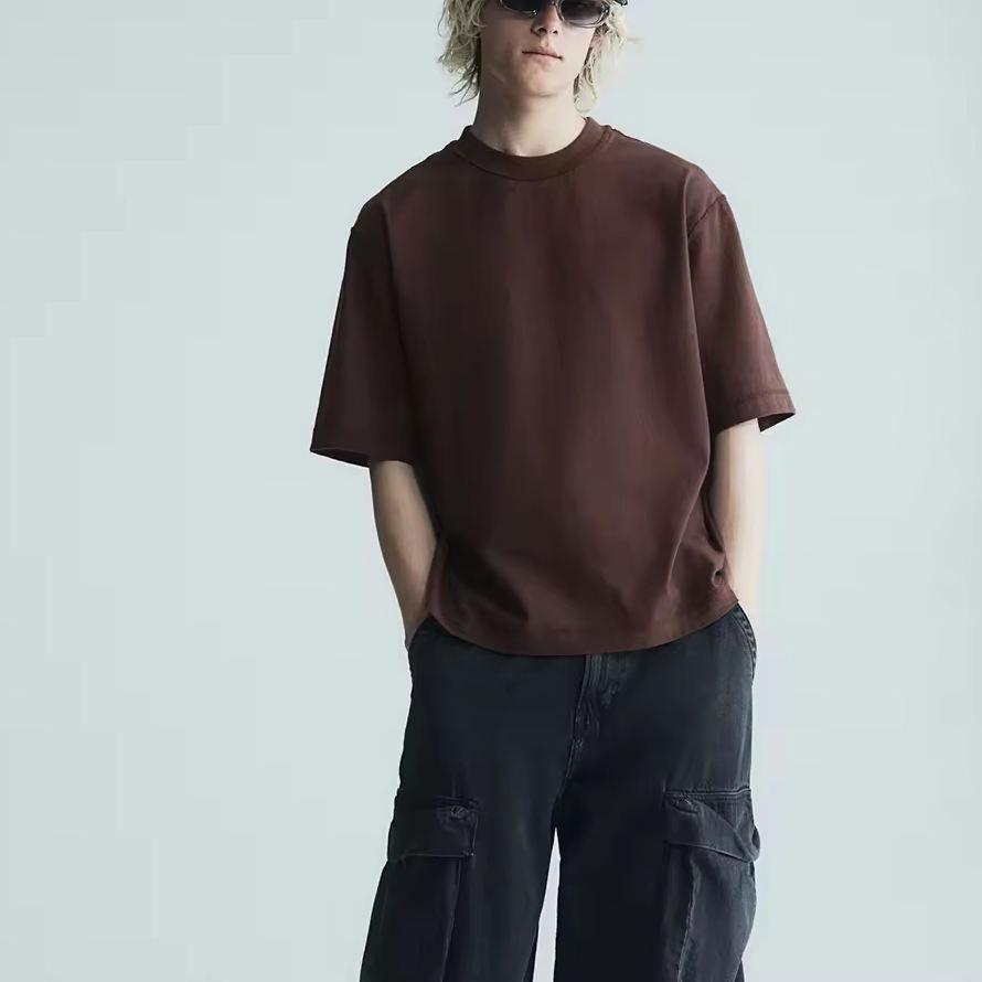 Camiseta Extra Grande con Logotipo Personalizado Estilo Hip Hop Urbano, Camiseta de Alta Calidad con Lavado Ácido para Adultos