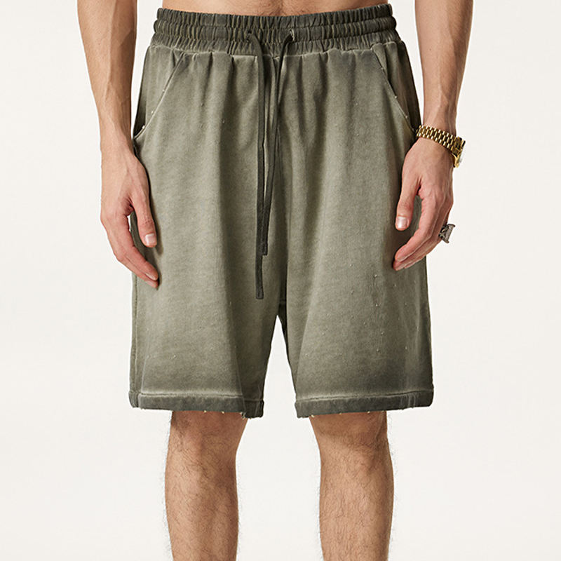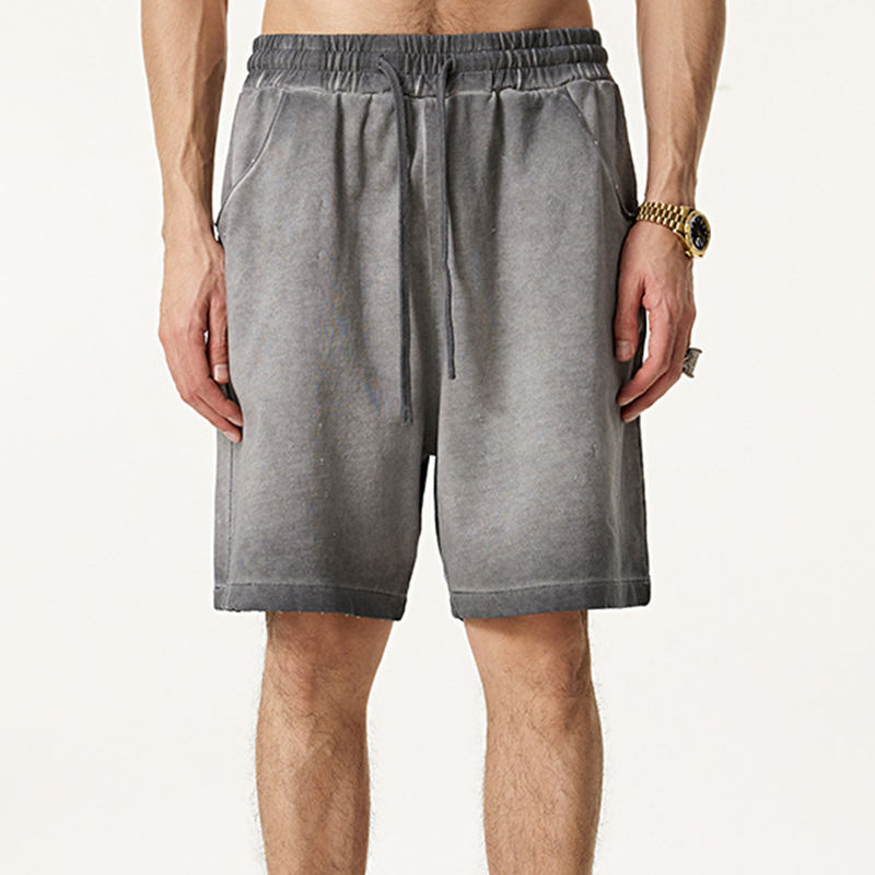 High Street Men's Acid Wash Shorts 100% Algodón 310GSM Heavyweight Street Style Pantalones cortos casuales desgastados con cordones