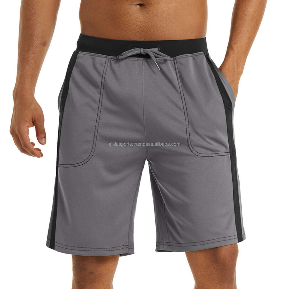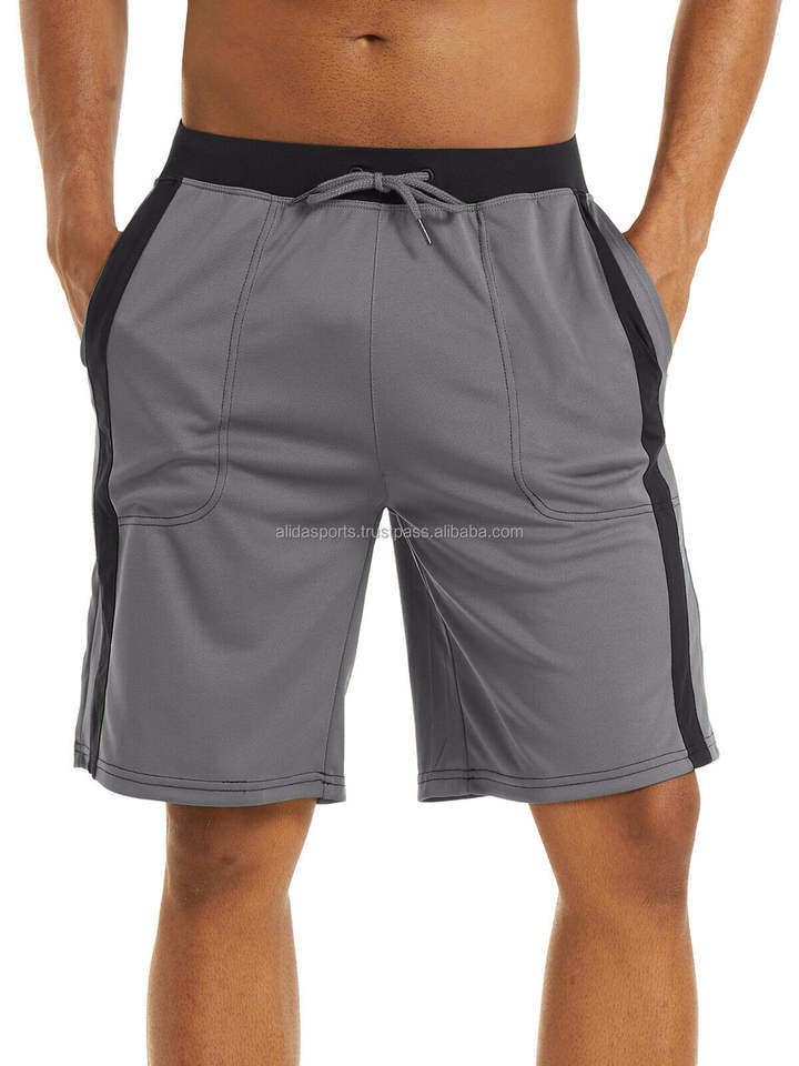 High Street Style Cintura elástica Pantalones cortos deportivos de secado rápido Bolsillos con cremallera Beach Jogger Fitness Athletic Gym Workout Pantalones cortos de malla