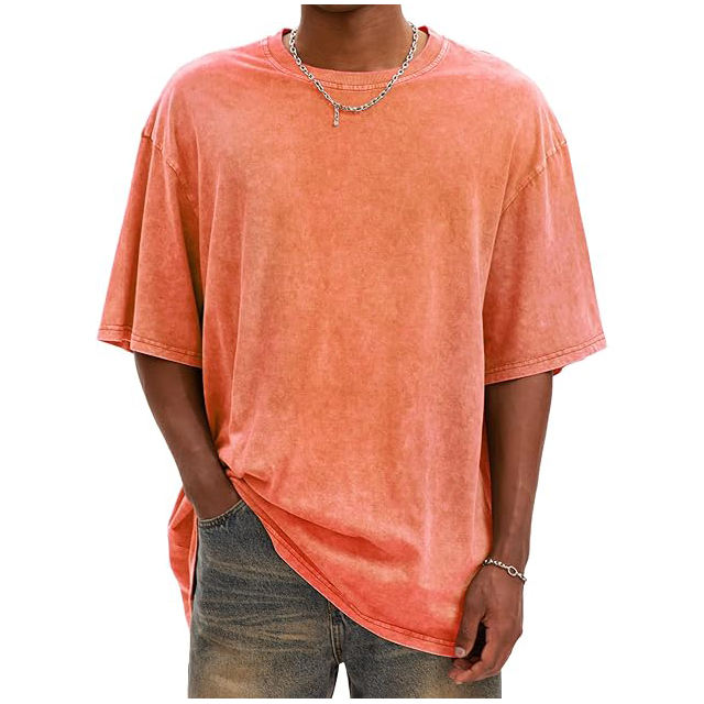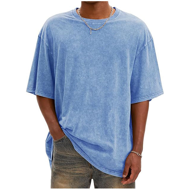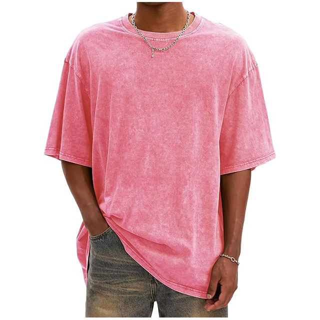 Camisetas de Hombre Estilo Urbano, Lavado Ácido, Hombros Caídos, Corte Holgado, 100% Algodón