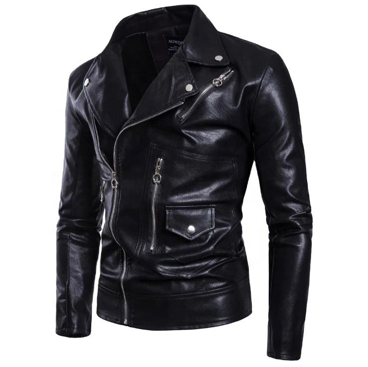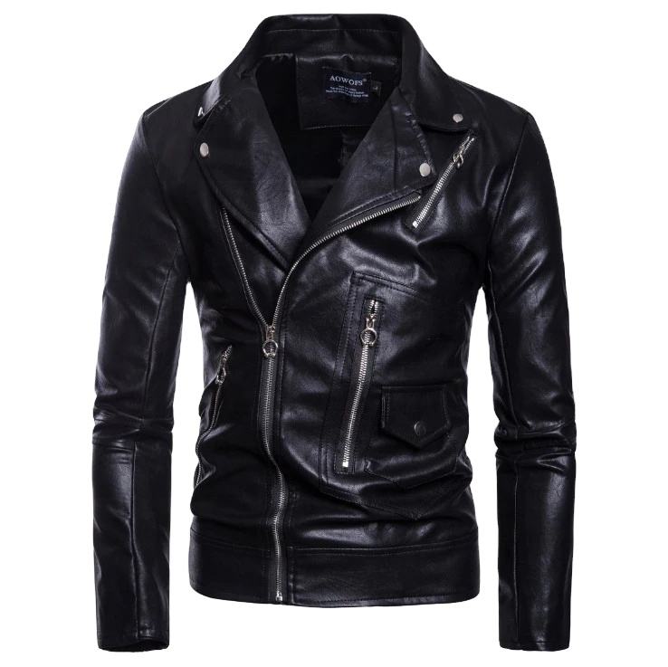 High Street Style Invierno Moda Alta calidad Chaqueta de cuero genuino Hombre Slim Fit Cremalleras XL Tamaño Teñido Lana Estampado