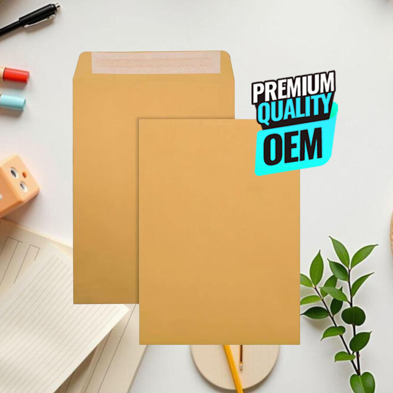 Sobre de papel Kraft sin recubrimiento de alta resistencia 85gsm sin madera 190x265mm diseño de sello pelado Uso De Oficina sobre de bolsillo de negocios