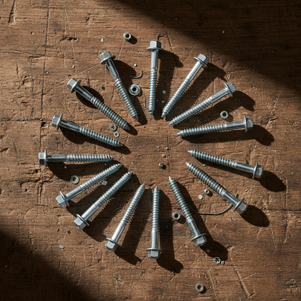 Tornillo de Rosca Gruesa para Madera, Clase 4, de Acero al Carbono, Métrico/Pulgadas, Punta Afilada, Cabeza Hexagonal Externa, HRC22-32, Zincado, Modelo PDC 4