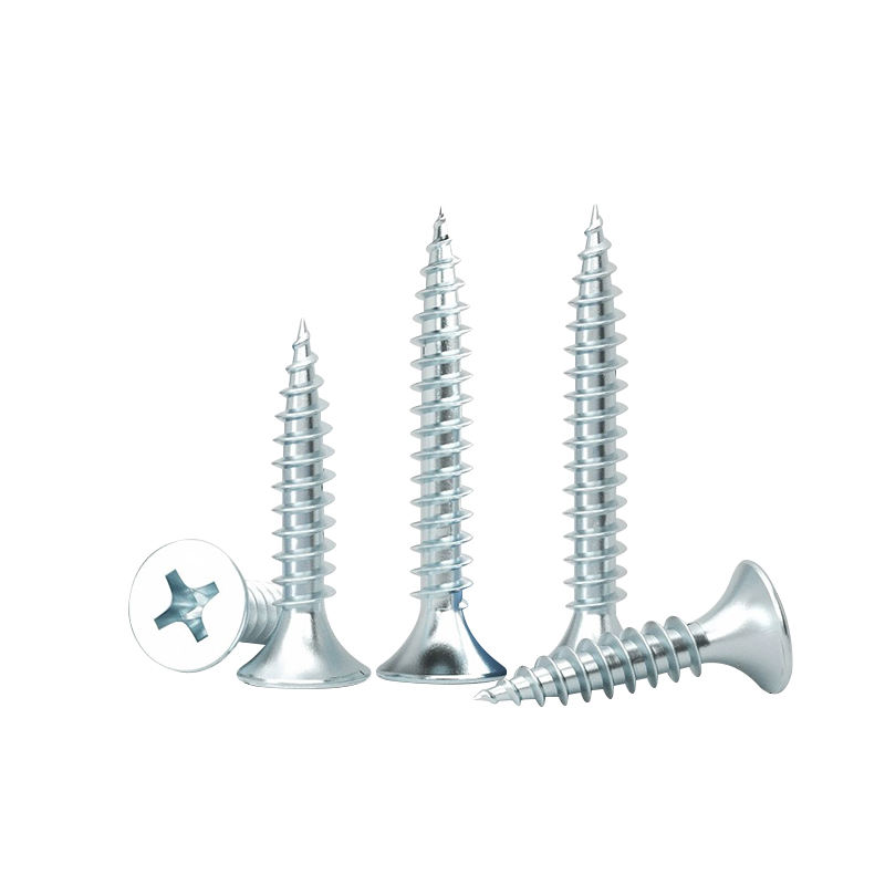 Tornillos de pared de cabeza plana cruzada recubierta de zinc M4 M5 de alta resistencia, tornillos de tablero de fibra endurecidos autorroscantes para carpintería