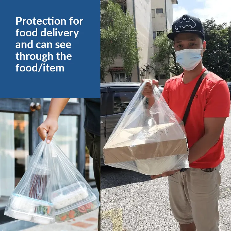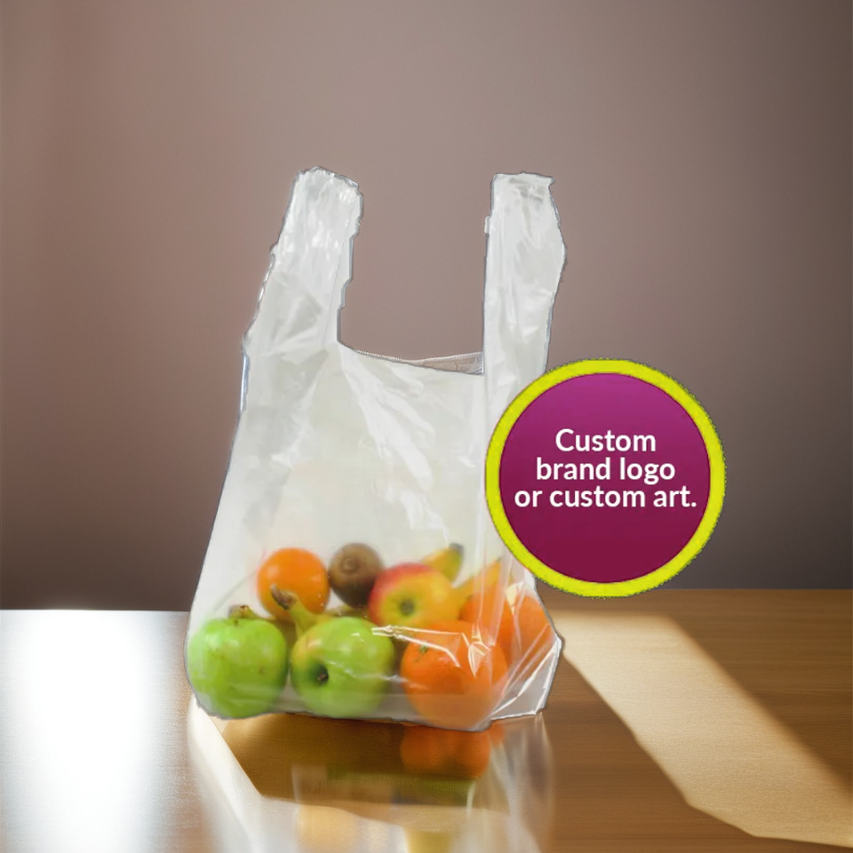 Bolsa de plástico de alta resistencia para llevar, tamaño y logotipo personalizados, aspecto claro y limpio