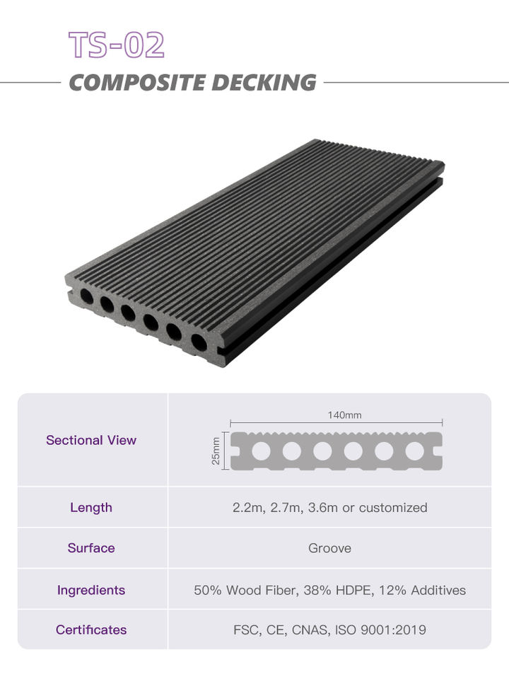 Composición:50% harina de madera, 35-40% plástico (HDPE), 10-15% otros aditivos