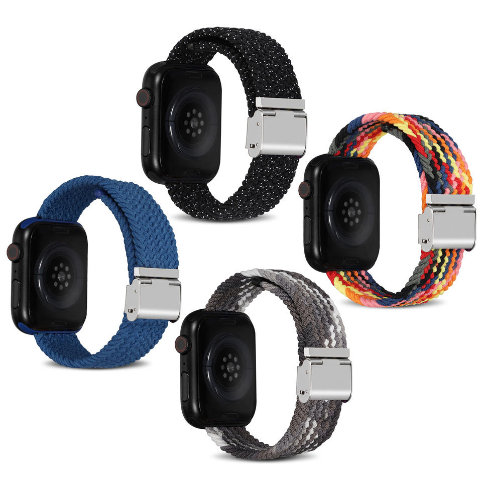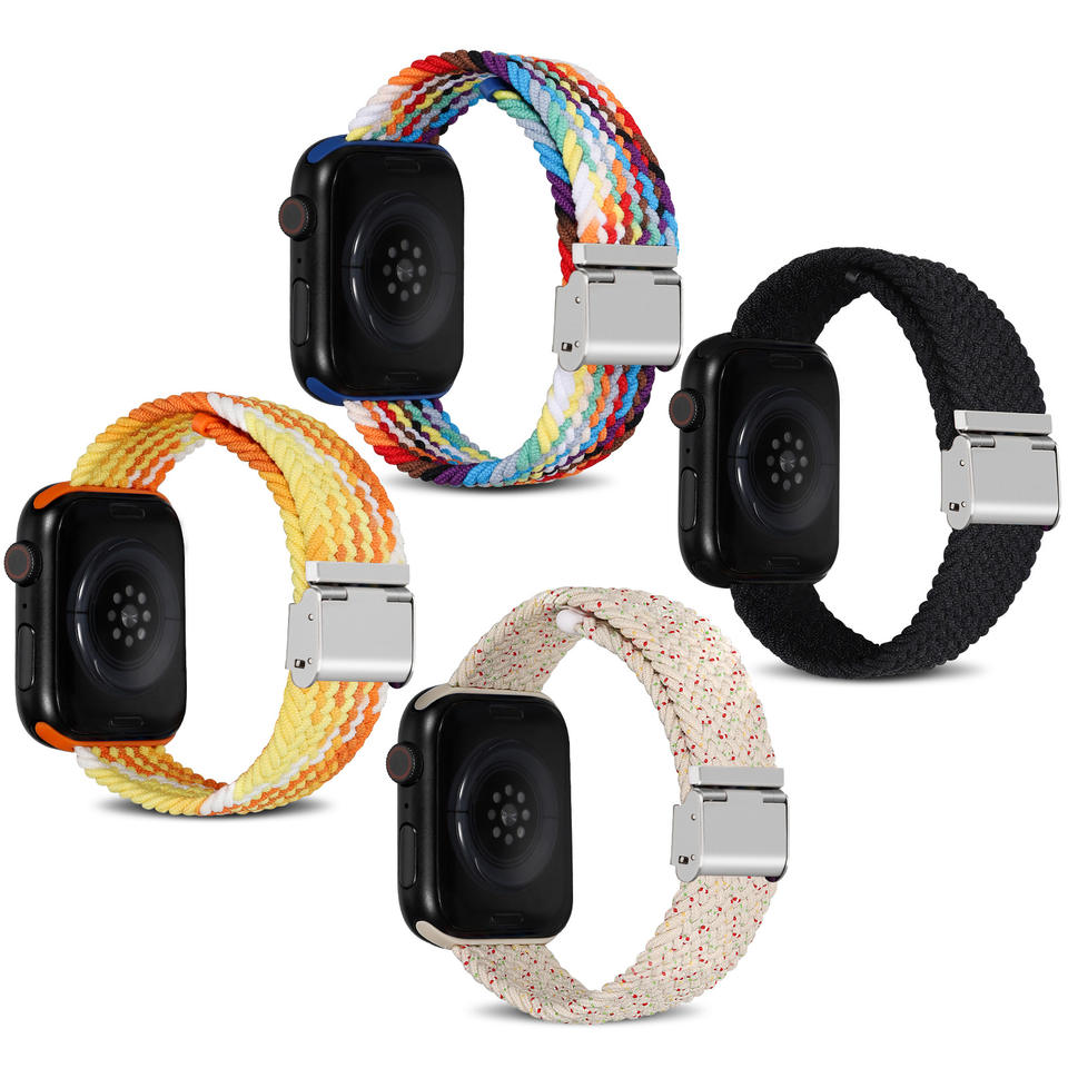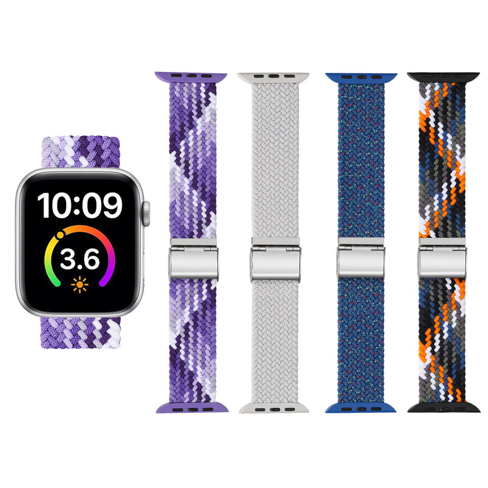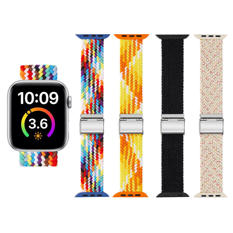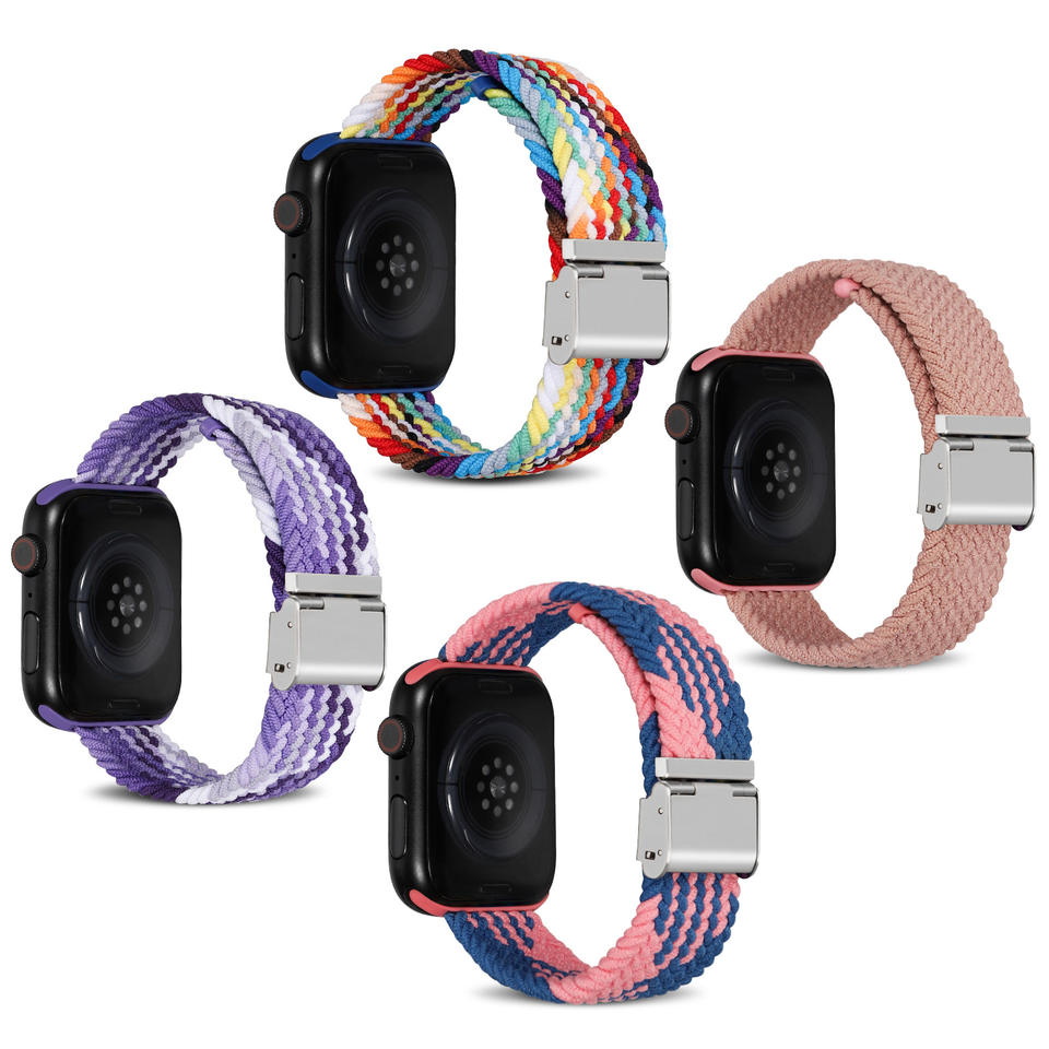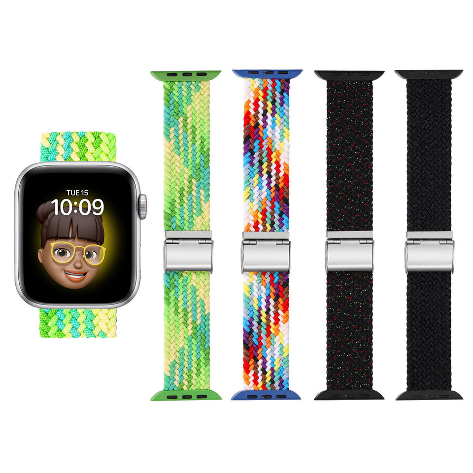 Correa trenzada de nailon transpirable de alta elasticidad con hebilla DW-Opciones multicolores para Apple Watch