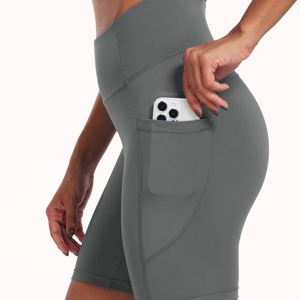 Pantalones cortos de Yoga de alta elasticidad con bolsillos Compresión Gimnasio Entrenamiento Correr Pantalones cortos deportivos Transpirable Jogging Fitness Yoga Leggings