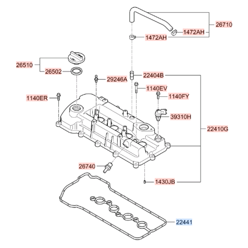 Junta de la Tapa de Balancines Resistente a Altas Temperaturas y a Fugas de Aceite, para Motor Automotriz, 22441 03170 para Hyundai Kia