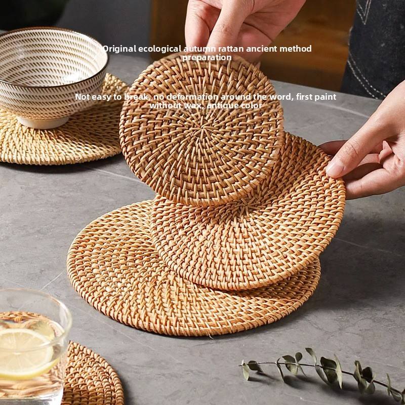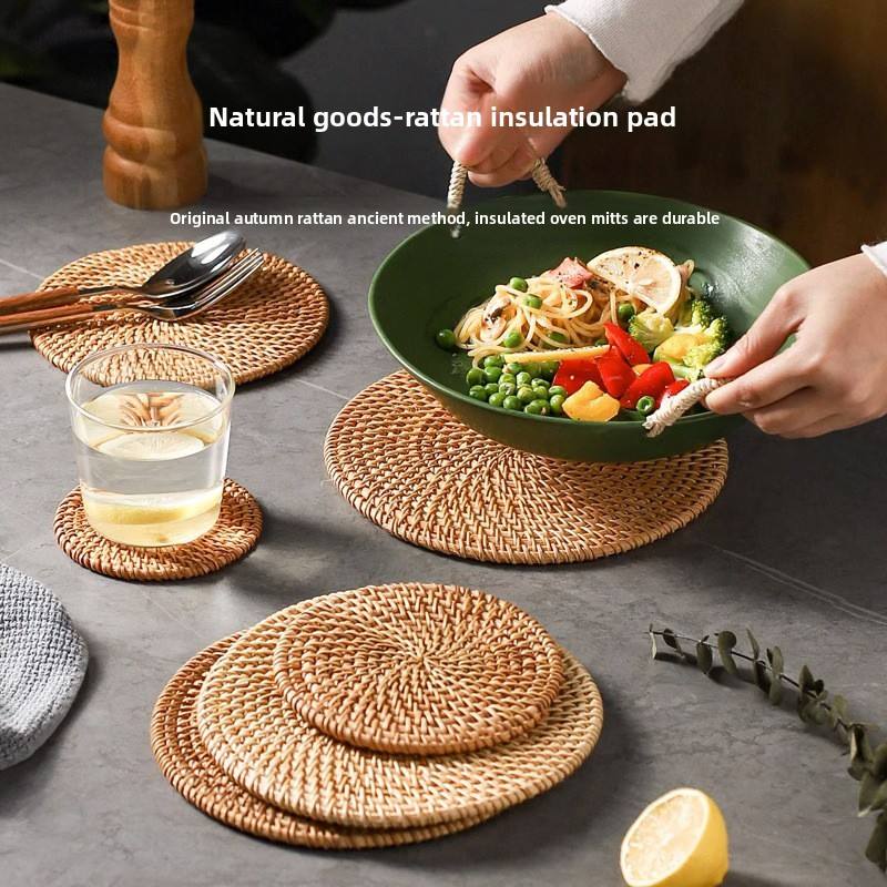 Juego de Manteles Individuales de Ratán Resistentes a Altas Temperaturas, Guantes de Horno y Posavasos para Ollas y Platos, Resistentes al Calor, para el Hogar