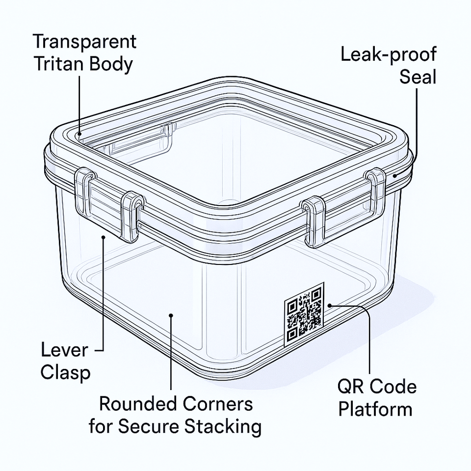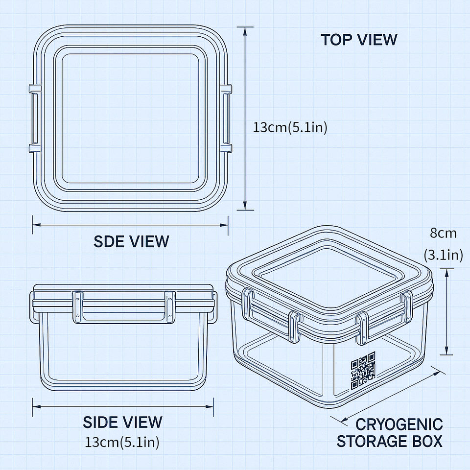 Contenedor de Muestras Transparente de Tritán, Hermético, Apilable e Ideal para Almacenamiento de Productos Químicos a Baja Temperatura