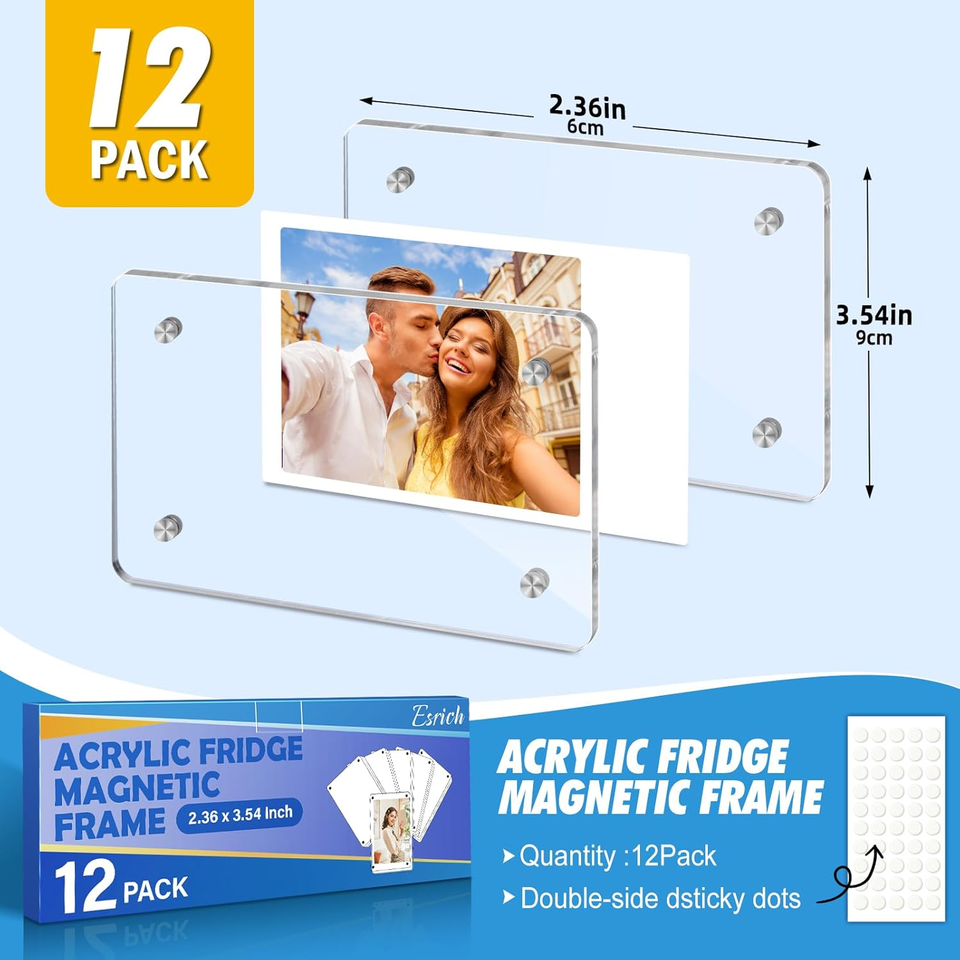 Marco de fotos de nevera de acrílico magnético fuerte de alta transparencia Pantalla DE FOTOS Mini marcos de fotos Marco de fotos de acrílico de doble cara