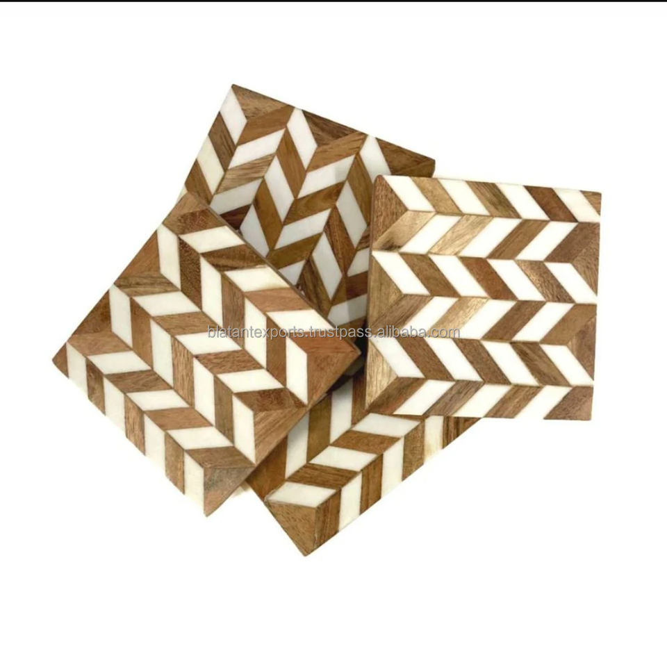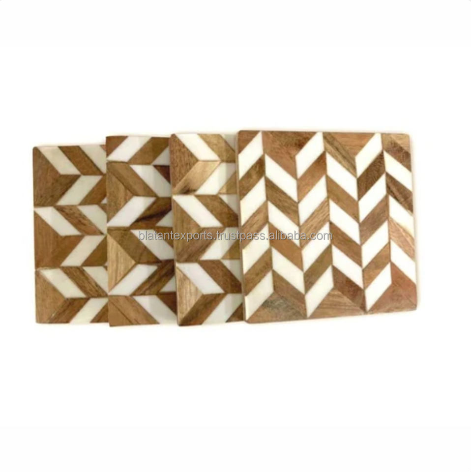 Juego de posavasos para tazas de té de nogal hechos a mano de alta tendencia, posavasos de resina al mejor precio, esteras y almohadillas hechas a mano de La India