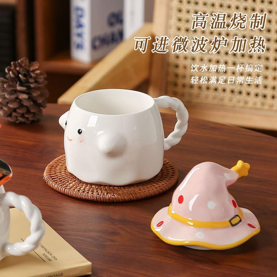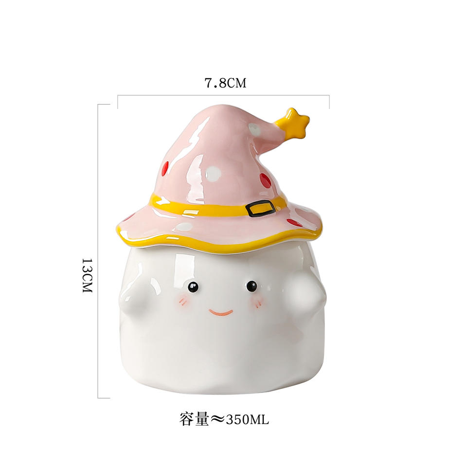 Taza de cerámica de fantasma de dibujos animados lindo de alto valor con regalo de tapa para novias para ocasiones