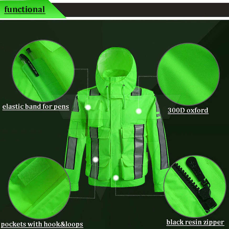 Uniforme de trabajo de poliéster reflectante de chaqueta de seguridad de construcción de alta visibilidad con logotipo personalizable